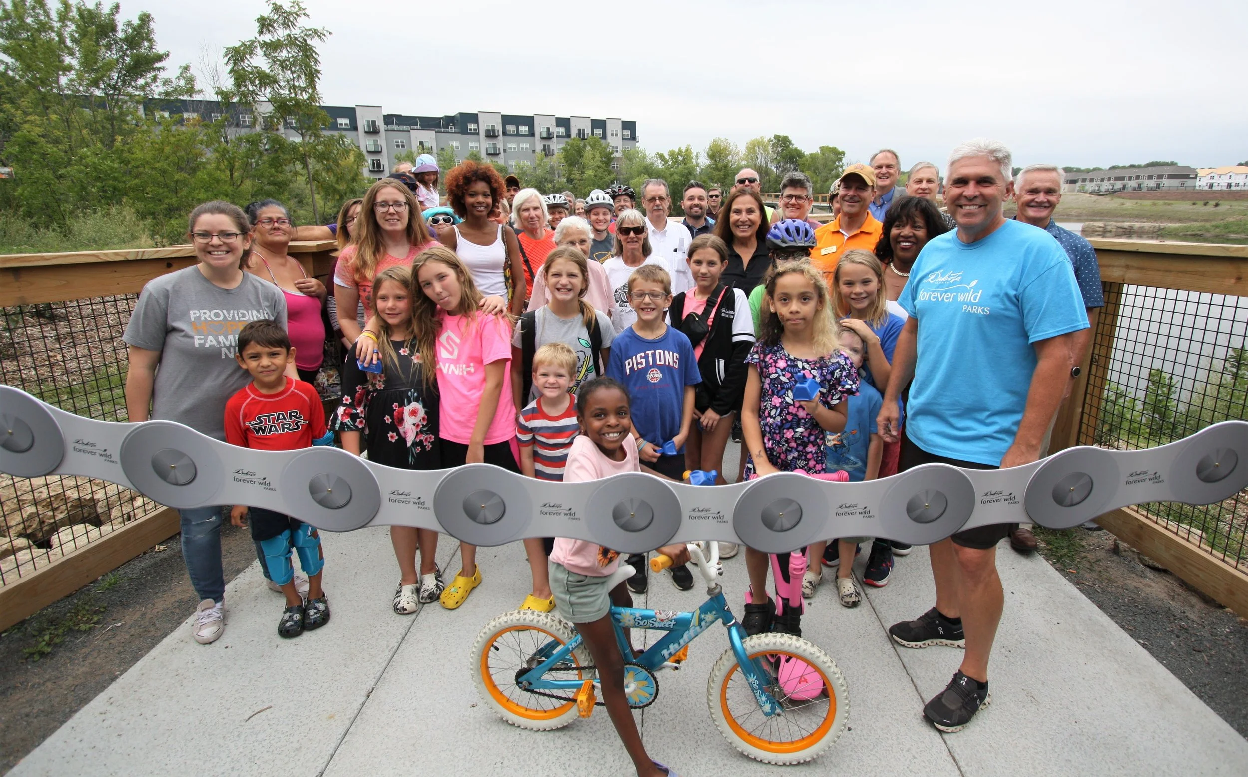 At the Thompson County Park land bridge ribbon-cutting with community members and Dakota County Commissioner Joe Atkins.